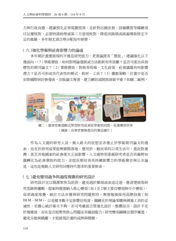 118%u4eba%u6587%u8207%u793e%u6703%u79d1%u5b78%u7c21%u8a0a%u300026%u53774%u671f%uff0e114%u5e749%u6708%u529b%u8207%u884c%u653f%u8ca0%u64d4%u3002%u5efa%u8b70%u9810%u5148%u59a5%u5584%u898f%u5283%u9810%u7b97%uff0c%u4e26%u91dd%u5c0d%u51fa%u570b%u5dee%u65c5%u3001%u8a2d%u5099%u8cfc%u7f6e%u7b49%u95dc%u9375%u9805%u76ee%u53cd%u8986%u6838%u5c0d%uff0c%u5fc5%u8981%u6642%u8acb%u52a9%u7406%u6216%u7b2c%u4e09%u65b9%u9010%u9805%u6821%u5c0d%uff0c%u964d%u4f4e%u56e0%u8aa4%u586b%u6216%u758f%u6f0f%u5c0e%u81f4%u6838%u5b9a%u4e0d%u8db3%u7684%u98a8%u96aa%uff0c%u591a%u5e74%u671f%u5c24%u9808%u5408%u7406%u5206%u914d%u6bcf%u5e74%u7d93%u8cbb%u3002%uff08%u516d%uff09%u5f37%u5316%u5b78%u8853%u8207%u793e%u6703%u5f71%u97ff%u529b%u7684%u8ad6%u8ff0%u591a%u5e74%u671f%u8a08%u756b%u61c9%u5c55%u73fe%u7684%u4e0d%u50c5%u662f%u7814%u7a76%u80fd%u529b%uff0c%u66f4%u9700%u8ad6%u8b49%u5176%u300c%u50f9%u503c%u300d%u3002%u5efa%u8b70%u5f37%u5316%u4ee5%u4e0b%u5e7e%u9762%u5411%uff1a%uff081%uff09%u5b78%u8853%u50f9%u503c%uff1a%u5982%u4f55%u5c0d%u7406%u8ad6%u767c%u5c55%u6216%u65b9%u6cd5%u5275%u65b0%u6709%u6240%u8ca2%u737b%uff1f%u662f%u5426%u53ef%u7522%u51fa%u5177%u6307%u6a19%u6027%u7684%u671f%u520a%u8ad6%u6587%uff1f%uff082%uff09%u5be6%u52d9%u50f9%u503c%uff1a%u5c0d%u6559%u80b2%u73fe%u5834%u3001%u6587%u5316%u653f%u7b56%u3001%u793e%u6703%u8b70%u984c%u6709%u4f55%u5f71%u97ff%u6f5b%u529b%uff1f%u662f%u5426%u53ef%u5f62%u6210%u5177%u4ee3%u8868%u6027%u7684%u6a21%u5f0f%u3001%u6559%u6750%u3001%u5de5%u5177%uff1f%uff083%uff09%u64f4%u6563%u7b56%u7565%uff1a%u8a08%u756b%u4e2d%u662f%u5426%u5b89%u6392%u570b%u969b%u7814%u8a0e%u6703%u767c%u8868%u3001%u51fa%u7248%u8ad6%u6587%u5c08%u66f8%u3001%u5efa%u7acb%u7db2%u7ad9%u6216%u958b%u653e%u8cc7%u6e90%u5e73%u81fa%uff1f%u5982%u5716%u4e8c%u7bc4%u4f8b%u3002%u5716%u4e8c%uff1a%u904b%u7b97%u601d%u7dad%u904a%u6232%u5f0f%u5b78%u7fd2%u7814%u7a76%u6210%u679c%u5f9e%u5b78%u8853%u5230%u6c11%u9593%u3001%u5f9e%u81fa%u7063%u5230%u4e16%u754c%uff08%u5716%u6e90%uff1a%u7531%u7b46%u8005%u5be6%u52d9%u7522%u51fa%u7684%u5be6%u54c1%u5716%u7247%uff09%u4f5c%u70ba%u4eba%u6587%u8655%u7684%u7814%u7a76%u4eba%u54e1%uff0c%u500b%u4eba%u6700%u5927%u7684%u6b23%u6170%u4e26%u975e%u50c5%u6b62%u65bc%u5b78%u8853%u671f%u520a%u8ad6%u6587%u7684%u767c%u8868%uff0c%u800c%u5728%u65bc%u7814%u7a76%u6210%u679c%u80fd%u5920%u5be6%u969b%u843d%u5730%uff0c%u61c9%u7528%u65bc%u4e00%u822c%u6c11%u773e%u7684%u65e5%u5e38%u751f%u6d3b%u4e2d%uff0c%u9032%u800c%u5c0d%u81fa%u7063%uff0c%u751a%u81f3%u5176%u4ed6%u570b%u5bb6%u7684%u793e%u6703%u7522%u751f%u6b63%u9762%u5f71%u97ff%u3002%u4eba%u6587%u8655%u7279%u5225%u91cd%u8996%u7814%u7a76%u8005%u662f%u5426%u5177%u5099%u5c07%u77e5%u8b58%u8f49%u5316%u70ba%u793e%u6703%u50f9%u503c%u7684%u80fd%u529b%uff0c%u4e26%u80fd%u9577%u671f%u57f9%u80b2%u5177%u6301%u7e8c%u5f71%u97ff%u529b%u7684%u5b78%u8853%u8072%u97f3%u8207%u516c%u5171%u8ad6%u8ff0%uff0c%u9019%u4e5f%u662f%u63a8%u52d5%u4eba%u6587%u7814%u7a76%u56de%u61c9%u6642%u4ee3%u9700%u6c42%u7684%u91cd%u8981%u4f7f%u547d%u3002%uff08%u4e03%uff09%u907f%u514d%u8b8a%u9805%u904e%u591a%u8207%u904e%u5ea6%u8907%u96dc%u7684%u7814%u7a76%u8a2d%u8a08%u7814%u7a76%u8a2d%u8a08%u5b9c%u4ee5%u7c21%u6f54%u805a%u7126%u70ba%u539f%u5247%uff0c%u907f%u514d%u904e%u65bc%u7e41%u7463%u6216%u8868%u8ff0%u8fc2%u8ff4%uff0c%u61c9%u6e05%u695a%u5c55%u73fe%u7814%u7a76%u601d%u8def%u8207%u908f%u8f2f%u3002%u63d0%u6848%u6642%u50c5%u9700%u7d0d%u5165%u6838%u5fc3%u8b8a%u9805%uff08%u59821%u81f32%u500b%u4e3b%u8981%u81ea%u8b8a%u9805%u8207%u4e2d%u4ecb%u8b8a%u9805%uff09%uff0c%u6bcb%u9808%u904e%u5ea6%u5806%u758a%u3002%u7d71%u8a08%u65b9%u6cd5%u4ea6%u61c9%u8207%u7814%u7a76%u554f%u984c%u76f8%u7b26%uff0c%u7121%u9700%u52c9%u5f37%u63a1%u7528%u9ad8%u968e%u6280%u8853%uff08%u5982HLM%u3001SEM%uff09%uff0c%u4ee5%u514d%u6a23%u672c%u6578%u4e0d%u8db3%u5f71%u97ff%u4fe1%u6548%u5ea6%u3002%u95dc%u9375%u5728%u65bc%u7406%u8ad6%u67b6%u69cb%u8207%u6e2c%u91cf%u5de5%u5177%u7684%u59a5%u9069%u6027%uff0c%u82e5%u64d4%u5fc3%u7d71%u8a08%u5c64%u6b21%u4e0d%u5920%uff0c%u4ea6%u53ef%u8003%u616e%u6df7%u5408%u8cea%u91cf%u5316%u8a2d%u8a08%u3002%u6574%u9ad4%u800c%u8a00%uff0c%u8a2d%u8a08%u4e0d%u5728%u65bc%u8907%u96dc%u5ea6%uff0c%u800c%u5728%u662f%u5426%u80fd%u805a%u7126%u6838%u5fc3%u554f%u984c%u4e26%u5177%u5099%u8aaa%u670d%u529b%uff1b%u7814%u7a76%u8b8a%u9805%u92ea%u9673%u5b9c%u5faa%u5e8f%u6f38%u9032%uff0c%u907f%u514d%u5206%u6563%u8207%u8df3%u8e8d%uff0c%u624d%u80fd%u5c55%u73fe%u8a08%u756b%u7684%u6210%u719f%u8207%u7a69%u5065%u3002