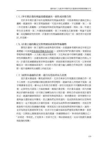 %u570b%u79d1%u6703%u4eba%u6587%u8655%u591a%u5e74%u671f%u7814%u7a76%u8a08%u756b%u64b0%u5beb%u8207%u5be6%u52d9%u7d93%u9a57%u5206%u4eab119%uff08%u516b%uff09%u591a%u5e74%u671f%u8a08%u756b%u7684%u7406%u8ad6%u57fa%u790e%u5efa%u8b70%u5177%u4e00%u81f4%u6027%u6216%u5177%u6574%u5408%u6027%u82e5%u65bc%u591a%u5e74%u671f%u8a08%u756b%u4e2d%u6bcf%u5e74%u5ea6%u8b8a%u63db%u7814%u7a76%u7406%u8ad6%u6216%u6a21%u578b%uff0c%u53ef%u80fd%u6703%u5c0e%u81f4%u8a08%u756b%u7f3a%u4e4f%u6838%u5fc3%u908f%u8f2f%u3002%u5efa%u8b70%u4fdd%u6301%u4e00%u500b%u4e3b%u8981%u7406%u8ad6%u8108%u7d61%uff0c%u53ef%u9010%u6b65%u6df1%u5316%u6216%u64f4%u5c55%uff0c%u4e0d%u5b9c%u8df3%u8e8d%u3002%u7b2c%u4e8c%u3001%u7b2c%u4e09%u5e74%u82e5%u9700%u5c0e%u5165%u65b0%u89c0%u9ede%uff0c%u5b9c%u660e%u78ba%u8aaa%u660e%u8207%u539f%u59cb%u7406%u8ad6%u7684%u5c0d%u8a71%u95dc%u4fc2%u3002%u4f8b%u5982%uff1a%u7b2c%u4e00%u5e74%u5efa%u7acb%u5b78%u751f%u4fe1%u5ff5%u6a21%u578b%uff0c%u7b2c%u4e8c%u5e74%u64f4%u5c55%u6559%u5e2b%u89c0%u9ede%uff0c%u7b2c%u4e09%u5e74%u7d71%u6574%u70ba%u4e92%u52d5%u67b6%u69cb%u3002%u7406%u8ad6%u4e0d%u662f%u9644%u5c6c%uff0c%u800c%u662f%u9a45%u52d5%u7814%u7a76%u7684%u9aa8%u5e79%u3002%u8a08%u756b%u66f8%u4e2d%u7684%u7406%u8ad6%u8108%u7d61%u61c9%u5448%u73fe%u51fa%u300c%u540c%u4e00%u500b%u4e16%u754c%u4e2d%u9010%u6b65%u63a2%u8a0e%u300d%u7684%u601d%u7dad%u3002%uff08%u4e5d%uff09%u8a08%u756b%u4e3b%u984c%u7684%u64ec%u5b9a%u5b9c%u5c0d%u9f4a%u570b%u5bb6%u653f%u7b56%u8207%u5b78%u8853%u8da8%u52e2%u64b0%u5beb%u8a08%u756b%u6642%uff0c%u9664%u4e86%u9078%u64c7%u81ea%u8eab%u6700%u719f%u6089%u7684%u9818%u57df%uff0c%u4ea6%u5efa%u8b70%u53c3%u8003%u570b%u79d1%u6703%u8fd1%u5e74%u6838%u5b9a%u8a08%u756b%u6a19%u984c%uff08%u53ef%u67e5%u8a62%u5b78%u8853%u88dc%u52a9%u734e%u52f5%u67e5%u8a62%u7cfb%u7d71%uff09%uff0c%u4e26%u5c0d%u7167%u5404%u5b78%u9580%u7684%u5fb5%u4ef6%u91cd%u9ede%uff0c%u638c%u63e1%u7576%u524d%u5b78%u8853%u8207%u653f%u7b56%u8da8%u52e2%u3002%u4eba%u6587%u8655%u4e3b%u984c%u5b9c%u56de%u61c9%u6559%u80b2%u3001%u6587%u5316%u8207%u793e%u6703%u4e2d%u5f85%u89e3%u7684%u8b70%u984c%uff0c%u5177%u5099%u5ef6%u4f38%u6027%u8207%u64f4%u6563%u6f5b%u529b%uff0c%u4e26%u907f%u514d%u50c5%u4f9d%u500b%u4eba%u554f%u984c%u610f%u8b58%u8a2d%u5b9a%u984c%u76ee%u800c%u5ffd%u7565%u5b78%u754c%u95dc%u6ce8%u7684%u6838%u5fc3%u65b9%u5411%u3002%u8a08%u756b%u82e5%u80fd%u517c%u9867%u570b%u5bb6%u9700%u6c42%u8207%u7576%u524d%u8da8%u52e2%uff0c%u66f4%u80fd%u5f70%u986f%u5176%u50f9%u503c%u8207%u53ef%u884c%u6027%u3002%u4ee5%u7b46%u8005%u7d93%u9a57%u800c%u8a00%uff0c%u9664%u56de%u61c9%u570b%u5bb6%u653f%u7b56%u5916%uff0c%u4ea6%u66fe%u65bc%u5927%u578b%u8a08%u756b%u4e2d%u878d%u5165%u570b%u969b%u5408%u4f5c%u8207%u8a2a%u554f%uff0c%u62d3%u5c55%u8996%u91ce%uff0c%u63d0%u5347%u81fa%u7063%u7814%u7a76%u5728%u570b%u969b%u4e0a%u7684%u80fd%u898b%u5ea6%u3002%uff08%u5341%uff09%u9762%u5c0d%u672a%u901a%u904e%u7684%u8a08%u756b%uff0c%u9032%u884c%u53cd%u601d%u800c%u975e%u9577%u4e45%u6cae%u55aa%u7576%u8a08%u756b%u672a%u7372%u901a%u904e%uff0c%u96e3%u514d%u611f%u5230%u632b%u6298%uff0c%u5c24%u5176%u82e5%u727d%u6d89%u5408%u4f5c%u898f%u5283%u751a%u81f3%u8de8%u570b%u5408%u4f5c%uff0c%u66f4%u4ee4%u4eba%u60cb%u60dc%u3002%u4f46%u9019%u4e9b%u7d93%u9a57%u540c%u6a23%u662f%u5bf6%u8cb4%u7684%u5b78%u7fd2%u6b77%u7a0b%u3002%u5efa%u8b70%u7533%u8acb%u4eba%u5f85%u60c5%u7dd2%u5e73%u5fa9%u5f8c%uff0c%u9010%u5b57%u95b1%u8b80%u5be9%u67e5%u610f%u898b%uff0c%u96d6%u672a%u5fc5%u5168%u7136%u5951%u5408%u539f%u69cb%u60f3%uff0c%u537b%u5f80%u5f80%u80fd%u63d0%u4f9b%u4e0d%u540c%u89c0%u9ede%u8207%u6f5b%u5728%u555f%u767c%uff0c%u5fc5%u8981%u6642%u4e5f%u53ef%u8acb%u7b2c%u4e09%u65b9%u5354%u52a9%u6aa2%u8996%uff0c%u88dc%u5f37%u8a08%u756b%u76f2%u9ede%u3002%u82e5%u8a08%u756b%u672a%u901a%u904e%uff0c%u539f%u5167%u5bb9%u96d6%u7121%u6cd5%u65bc%u570b%u79d1%u6703%u91cd%u63d0%uff0c%u4f46%u53ef%u4fee%u6b63%u5f8c%u8f49%u70ba%u6821%u5167%u5c0f%u578b%u8a08%u756b%u3001%u8de8%u6821%u5408%u4f5c%u6216%u6559%u80b2%u90e8%u8a08%u756b%u7b49%u5f62%u5f0f%u3002%u5efa%u8b70%u6301%u7e8c%u53c3%u8207%u7814%u8a0e%u3001%u7dad%u6301%u7814%u7a76%u71b1%u5ea6%u8207%u7522%u51fa%u3002%u7b46%u8005%u9ad4%u6703%u5230%uff0c%u7814%u7a76%u6b77%u7a0b%u4e2d%u8a08%u756b%u8207%u8ad6%u6587%u906d%u62d2%u7d55%u5728%u6240%u96e3%u514d%uff0c%u771f%u6b63%u8b93%u6211%u5011%u8d70%u5f97%u66f4%u9060%u7684%uff0c%u662f%u9762%u5c0d%u632b%u6557%u5f8c%u7684%u53cd%u601d%u8207%u5224%u65b7%u80fd%u529b%u3002%u9019%u4e0d%u50c5%u662f%u4fee%u6b63%u8a08%u756b%u7684%u6280%u8853%uff0c%u66f4%u662f%u6210%u70ba%u6210%u719f%u5b78%u8005%u7684%u95dc%u9375%u6b77%u7a0b%u3002%u82e5%u80fd%u5728%u5b78%u8853%u65c5%u7a0b%u4e2d%u627e%u5230%u81ea%u6211%u6fc0%u52f5%u7684%u6a02%u8da3%uff0c%u4fbf%u66f4%u80fd%u9577%u4e45%u4fdd%u6709%u63d0%u6848%u71b1%u60c5%u8207%u7814%u7a76%u52d5%u529b%u3002%u8aa0%u7136%uff0c%u4e26%u975e%u6bcf%u5247%u610f%u898b%u90fd%u9700%u7167%u55ae%u5168%u6536%uff0c%u4f46%u5176%u4e2d%u5f80%u5f80%u85cf%u6709%u5354%u52a9%u6211%u5011%u767c%u73fe%u76f2%u9ede%u7684%u6a5f%u6703%u3002%u91cd%u8981%u7684%u662f%uff0c%u4ee5%u958b%u653e%u5fc3%u614b%u7be9%u9078%u6709%u52a9%u6539%u9032%u7684%u5efa%u8b70%uff0c%u6301%u7e8c%u8abf%u6574%u524d%u884c%u3002%u7b46%u8005%u59cb%u7d42%u63d0%u9192%u81ea%u5df1%uff1a%u300c%u6d3b%u5230%u8001%u3001%u5b78%u5230%u8001%u300d%u624d%u662f%u6839%u672c%uff1b%u82e5%u56fa%u5b88%u5df1%u898b%u3001%u7121%u6cd5%u63a5%u7d0d%u4ed6%u898b%uff0c%u53cd%u800c%u53ef%u80fd%u932f%u5931%u6fc0%u76ea%u8207%u555f%u767c%u7684%u5951%u6a5f%u3002