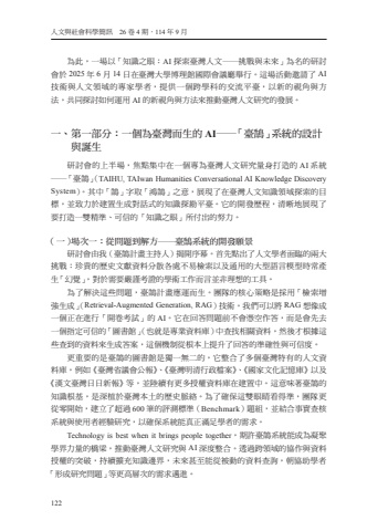 122%u4eba%u6587%u8207%u793e%u6703%u79d1%u5b78%u7c21%u8a0a%u300026%u53774%u671f%uff0e114%u5e749%u6708%u70ba%u6b64%uff0c%u4e00%u5834%u4ee5%u300c%u77e5%u8b58%u4e4b%u773c%uff1aAI%u63a2%u7d22%u81fa%u7063%u4eba%u6587%u2500%u6311%u6230%u8207%u672a%u4f86%u300d%u70ba%u540d%u7684%u7814%u8a0e%u6703%u65bc2025%u5e746%u670814%u65e5%u5728%u81fa%u7063%u5927%u5b78%u535a%u7406%u9928%u570b%u969b%u6703%u8b70%u5ef3%u8209%u884c%u3002%u9019%u5834%u6d3b%u52d5%u9080%u8acb%u4e86AI%u6280%u8853%u8207%u4eba%u6587%u9818%u57df%u7684%u5c08%u5bb6%u5b78%u8005%uff0c%u63d0%u4f9b%u4e00%u500b%u8de8%u5b78%u79d1%u7684%u4ea4%u6d41%u5e73%u81fa%uff0c%u4ee5%u65b0%u7684%u8996%u89d2%u8207%u65b9%u6cd5%uff0c%u5171%u540c%u63a2%u8a0e%u5982%u4f55%u904b%u7528AI%u7684%u65b0%u8996%u89d2%u8207%u65b9%u6cd5%u4f86%u63a8%u52d5%u81fa%u7063%u4eba%u6587%u7814%u7a76%u7684%u767c%u5c55%u3002%u4e00%u3001%u7b2c%u4e00%u90e8%u5206%uff1a%u4e00%u500b%u70ba%u81fa%u7063%u800c%u751f%u7684AI%u2500%u300c%u81fa%u9d60%u300d%u7cfb%u7d71%u7684%u8a2d%u8a08%u8207%u8a95%u751f%u7814%u8a0e%u6703%u7684%u4e0a%u534a%u5834%uff0c%u7126%u9ede%u96c6%u4e2d%u5728%u4e00%u500b%u5c08%u70ba%u81fa%u7063%u4eba%u6587%u7814%u7a76%u91cf%u8eab%u6253%u9020%u7684AI%u7cfb%u7d71%u300c%u81fa%u9d60%u300d%uff08TAIHU, TAIwan Humanities Conversational AI Knowledge Discovery System%uff09%u3002%u5176%u4e2d%u300c%u9d60%u300d%u5b57%u53d6%u300c%u9d3b%u9d60%u300d%u4e4b%u610f%uff0c%u5c55%u73fe%u4e86%u5728%u81fa%u7063%u4eba%u6587%u77e5%u8b58%u9818%u57df%u63a2%u7d22%u7684%u76ee%u6a19%uff0c%u4e26%u81f4%u529b%u65bc%u5efa%u7f6e%u751f%u6210%u5c0d%u8a71%u5f0f%u7684%u77e5%u8b58%u63a2%u52d8%u5e73%u81fa%u3002%u5b83%u7684%u958b%u767c%u6b77%u7a0b%uff0c%u6e05%u6670%u5730%u5c55%u73fe%u4e86%u8981%u6253%u9020%u4e00%u96d9%u7cbe%u6e96%u3001%u53ef%u4fe1%u7684%u300c%u77e5%u8b58%u4e4b%u773c%u300d%u6240%u4ed8%u51fa%u7684%u52aa%u529b%u3002%uff08%u4e00%uff09%u5834%u6b21%u4e00%uff1a%u5f9e%u554f%u984c%u5230%u89e3%u65b9%u81fa%u9d60%u7cfb%u7d71%u7684%u958b%u767c%u9858%u666f%u7814%u8a0e%u6703%u7531%u6211%uff08%u81fa%u9d60%u8a08%u756b%u4e3b%u6301%u4eba%uff09%u63ed%u958b%u5e8f%u5e55%u3002%u9996%u5148%u9ede%u51fa%u4e86%u4eba%u6587%u5b78%u8005%u9762%u81e8%u7684%u5169%u5927%u6311%u6230%uff1a%u73cd%u8cb4%u7684%u6b77%u53f2%u6587%u737b%u8cc7%u6599%u5206%u6563%u5404%u8655%u4e0d%u6613%u6aa2%u7d22%u4ee5%u53ca%u901a%u7528%u7684%u5927%u578b%u8a9e%u8a00%u6a21%u578b%u6642%u5e38%u7522%u751f%u300c%u5e7b%u89ba%u300d%uff0c%u5c0d%u65bc%u9700%u8981%u56b4%u8b39%u8003%u8b49%u7684%u5b78%u8853%u5de5%u4f5c%u800c%u8a00%u4e26%u975e%u7406%u60f3%u7684%u5de5%u5177%u3002%u70ba%u4e86%u89e3%u6c7a%u9019%u4e9b%u554f%u984c%uff0c%u81fa%u9d60%u8a08%u756b%u61c9%u904b%u800c%u751f%u3002%u5718%u968a%u7684%u6838%u5fc3%u7b56%u7565%u662f%u63a1%u7528%u300c%u6aa2%u7d22%u589e%u5f37%u751f%u6210%u300d%uff08Retrieval-Augmented Generation, RAG%uff09%u6280%u8853%u3002%u6211%u5011%u53ef%u4ee5%u5c07RAG%u60f3%u50cf%u6210%u4e00%u500b%u6b63%u5728%u9032%u884c%u300c%u958b%u5377%u8003%u8a66%u300d%u7684AI%u3002%u5b83%u5728%u56de%u7b54%u554f%u984c%u524d%u4e0d%u6703%u6191%u7a7a%u4f5c%u7b54%uff0c%u800c%u662f%u6703%u5148%u53bb%u4e00%u500b%u6307%u5b9a%u53ef%u4fe1%u7684%u300c%u5716%u66f8%u9928%u300d%uff08%u4e5f%u5c31%u662f%u5c08%u696d%u8cc7%u6599%u5eab%uff09%u4e2d%u67e5%u627e%u76f8%u95dc%u8cc7%u6599%uff0c%u7136%u5f8c%u624d%u6839%u64da%u9019%u4e9b%u67e5%u5230%u7684%u8cc7%u6599%u4f86%u751f%u6210%u7b54%u6848%uff0c%u9019%u500b%u6a5f%u5236%u5f9e%u6839%u672c%u4e0a%u63d0%u5347%u4e86%u56de%u7b54%u7684%u6e96%u78ba%u6027%u8207%u53ef%u4fe1%u5ea6%u3002%u66f4%u91cd%u8981%u7684%u662f%u81fa%u9d60%u7684%u5716%u66f8%u9928%u662f%u7368%u4e00%u7121%u4e8c%u7684%uff0c%u5b83%u6574%u5408%u4e86%u591a%u500b%u81fa%u7063%u7279%u6709%u7684%u4eba%u6587%u8cc7%u6599%u5eab%uff0c%u4f8b%u5982%u300a%u81fa%u7063%u7701%u8b70%u6703%u516c%u5831%u300b%u3001%u300a%u81fa%u7063%u660e%u6e05%u884c%u653f%u6a94%u6848%u300b%u3001%u300a%u570b%u5bb6%u6587%u5316%u8a18%u61b6%u5eab%u300b%u4ee5%u53ca%u300a%u6f22%u6587%u81fa%u7063%u65e5%u65e5%u65b0%u5831%u300b%u7b49%uff0c%u4e26%u9678%u7e8c%u6709%u66f4%u591a%u6388%u6b0a%u8cc7%u6599%u5eab%u5728%u5efa%u7f6e%u4e2d%u3002%u9019%u610f%u5473%u8457%u81fa%u9d60%u7684%u77e5%u8b58%u6839%u57fa%uff0c%u662f%u6df1%u690d%u65bc%u81fa%u7063%u672c%u571f%u7684%u6b77%u53f2%u8108%u7d61%u3002%u70ba%u4e86%u78ba%u4fdd%u9019%u96d9%u773c%u775b%u770b%u5f97%u6e96%uff0c%u5718%u968a%u66f4%u5f9e%u96f6%u958b%u59cb%uff0c%u5efa%u7acb%u4e86%u8d85%u904e600%u7b46%u7684%u8a55%u6e2c%u6a19%u6e96%uff08Benchmark%uff09%u984c%u7d44%uff0c%u4e26%u7d50%u5408%u4e8b%u5be6%u67e5%u6838%u7cfb%u7d71%u8207%u4f7f%u7528%u8005%u7d93%u9a57%u7814%u7a76%uff0c%u4ee5%u78ba%u4fdd%u7cfb%u7d71%u80fd%u771f%u6b63%u6eff%u8db3%u5b78%u8005%u7684%u9700%u6c42%u3002Technology is best when it brings people together%uff0c%u671f%u8a31%u81fa%u9d60%u7cfb%u7d71%u80fd%u6210%u70ba%u51dd%u805a%u5b78%u754c%u529b%u91cf%u7684%u6a4b%u6881%uff0c%u63a8%u52d5%u81fa%u7063%u4eba%u6587%u7814%u7a76%u8207AI%u6df1%u5ea6%u6574%u5408%u3002%u900f%u904e%u8de8%u9818%u57df%u7684%u5354%u4f5c%u8207%u8cc7%u6599%u6388%u6b0a%u7684%u7a81%u7834%uff0c%u6301%u7e8c%u64f4%u5145%u77e5%u8b58%u908a%u754c%uff0c%u672a%u4f86%u751a%u81f3%u80fd%u5f9e%u88ab%u52d5%u7684%u8cc7%u6599%u67e5%u8a62%uff0c%u671d%u5354%u52a9%u5b78%u8005%u300c%u5f62%u6210%u7814%u7a76%u554f%u984c%u300d%u7b49%u66f4%u9ad8%u5c64%u6b21%u7684%u9700%u6c42%u9081%u9032%u3002