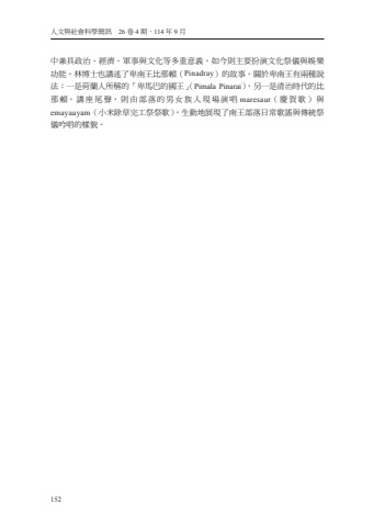 152%u4eba%u6587%u8207%u793e%u6703%u79d1%u5b78%u7c21%u8a0a%u300026%u53774%u671f%uff0e114%u5e749%u6708%u4e2d%u517c%u5177%u653f%u6cbb%u3001%u7d93%u6fdf%u3001%u8ecd%u4e8b%u8207%u6587%u5316%u7b49%u591a%u91cd%u610f%u7fa9%uff0c%u5982%u4eca%u5247%u4e3b%u8981%u626e%u6f14%u6587%u5316%u796d%u5100%u8207%u5a1b%u6a02%u529f%u80fd%u3002%u6797%u535a%u58eb%u4e5f%u8b1b%u8ff0%u4e86%u5351%u5357%u738b%u6bd4%u90a3%u8cf4%uff08Pinadray%uff09%u7684%u6545%u4e8b%uff0c%u95dc%u65bc%u5351%u5357%u738b%u6709%u5169%u7a2e%u8aaa%u6cd5%uff1a%u4e00%u662f%u8377%u862d%u4eba%u6240%u7a31%u7684%u300c%u5351%u99ac%u5df4%u7684%u570b%u738b%u300d%uff08Pimala Pinarai%uff09%uff0c%u53e6%u4e00%u662f%u6e05%u6cbb%u6642%u4ee3%u7684%u6bd4%u90a3%u8cf4%u3002%u8b1b%u5ea7%u5c3e%u8072%uff0c%u5247%u7531%u90e8%u843d%u7684%u7537%u5973%u65cf%u4eba%u73fe%u5834%u6f14%u5531maresaur%uff08%u6176%u8cc0%u6b4c%uff09%u8207emayaayam%uff08%u5c0f%u7c73%u9664%u8349%u5b8c%u5de5%u796d%u796d%u6b4c%uff09%uff0c%u751f%u52d5%u5730%u5c55%u73fe%u4e86%u5357%u738b%u90e8%u843d%u65e5%u5e38%u6b4c%u8b20%u8207%u50b3%u7d71%u796d%u5100%u541f%u5531%u7684%u6a23%u8c8c%u3002