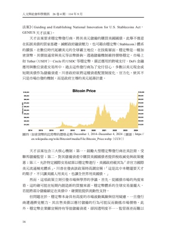 16%u4eba%u6587%u8207%u793e%u6703%u79d1%u5b78%u7c21%u8a0a%u300026%u53774%u671f%uff0e114%u5e749%u6708%u6cd5%u6848%u300b%uff08Guiding and Establishing National Innovation for U.S. Stablecoins Act%uff0cGENIUS %u5929%u624d%u6cd5%u6848%uff09%u3002%u5929%u624d%u6cd5%u6848%u8981%u6c42%u7a69%u5b9a%u5e63%u767c%u884c%u5546%uff0c%u5c07%u5176%u7f8e%u5143%u5132%u5099%u7684%u8cfc%u8cb7%u7f8e%u570b%u570b%u50b5%uff0c%u6b64%u8209%u4e0d%u50c5%u610f%u5728%u62d3%u5c55%u7f8e%u50b5%u7684%u8cb7%u5bb6%u57fa%u790e%uff0c%u6e1b%u8f15%u653f%u5e9c%u878d%u8cc7%u58d3%u529b%uff0c%u4e5f%u53ef%u85c9%u7531%u7a69%u5b9a%u5e63%uff08Stablecoin%uff09%u9ad4%u7cfb%u7684%u64f4%u5f35%uff0c%u5728%u6578%u4f4d%u6642%u4ee3%u5ef6%u7e8c%u7f8e%u5143%u7684%u5168%u7403%u9738%u4e3b%u5730%u4f4d%u3002%u5728%u6280%u8853%u5c64%u9762%uff0c%u7a69%u5b9a%u5e63%u662f%u4e00%u7a2e%u52a0%u5bc6%u8ca8%u5e63%uff0c%u5176%u50f9%u503c%u901a%u5e38%u8207%u7f8e%u5143%u7b49%u6cd5%u5e63%u639b%u9264%uff0c%u900f%u904e%u5132%u5099%u6a5f%u5236%u7dad%u6301%u50f9%u683c%u7a69%u5b9a%u3002%u5e02%u5834%u4e0a%u5982Tether %uff08USDT%uff09%u3001Circle%u7684USDC%u7b49%u7a69%u5b9a%u5e63%uff0c%u5ee3%u6cdb%u61c9%u7528%u65bc%u8de8%u5883%u652f%u4ed8%u3001DeFi%u91d1%u878d%u61c9%u7528%u8207%u6578%u4f4d%u8cc7%u7522%u4ea4%u6613%u6240%u4e2d%u3002%u904e%u53bb%u9019%u4e9b%u767c%u884c%u5546%u70ba%u4e86%u514c%u4ed8%u4fe1%u5fc3%uff0c%u591a%u6578%u4ee5%u7f8e%u5143%u73fe%u91d1%u6216%u77ed%u671f%u7f8e%u50b5%u4f5c%u70ba%u5132%u5099%u8cc7%u7522%u3002%u5ddd%u666e%u653f%u5e9c%u6b32%u5c07%u9019%u7a2e%u8cc7%u7522%u914d%u7f6e%u5236%u5ea6%u5316%u3001%u5b98%u65b9%u5316%uff0c%u4f7f%u5176%u4e0d%u53ea%u662f%u5e02%u5834%u81ea%u767c%u7684%u6a5f%u5236%uff0c%u800c%u662f%u653f%u5e9c%u4e3b%u5c0e%u7684%u7f8e%u5143%u5ef6%u58fd%u8a08%u756b%u3002%u5716%u56db%uff1a%u52a0%u5bc6%u8ca8%u5e63%u7684%u6bd4%u7279%u5e63%u7684%u50f9%u683c%u8d70%u52e2December 1, 2014%u2013December 4, 2024%uff08%u5716%u6e90%uff1ahttps://en.wikipedia.org/wiki/Bitcoin#/media/File:Bitcoin_Price.webp%uff08CC0%uff09%uff09%u5929%u624d%u6cd5%u6848%u5305%u542b%u4e09%u5927%u6838%u5fc3%u6a5f%u5236%uff1a%u7b2c%u4e00%uff0c%u9f13%u52f5%u5927%u578b%u7a69%u5b9a%u5e63%u767c%u884c%u5546%u5728%u7f8e%u8a3b%u518a%u3001%u53d7%u806f%u90a6%u5132%u5099%u76e3%u7ba1%uff1b%u7b2c%u4e8c%uff0c%u5c0d%u5176%u5132%u5099%u8cc7%u7522%u4e2d%u8cfc%u8cb7%u7f8e%u570b%u570b%u50b5%u8005%u63d0%u4f9b%u7a05%u6536%u6e1b%u514d%u8207%u653f%u7b56%u512a%u60e0%uff1b%u7b2c%u4e09%uff0c%u5141%u8a31%u7279%u5b9a%u570b%u969b%u4ea4%u6613%u7d50%u7b97%u4ee5%u7a69%u5b9a%u5e63%u9032%u884c%uff0c%u7f8e%u570b%u653f%u5e9c%u8996%u5176%u70ba%u300c%u975e%u5b98%u65b9%u570b%u969b%u7f8e%u5143%u6d41%u901a%u88dc%u5145%u9ad4%u7cfb%u300d%u3002%u5ddd%u666e%u5728%u767c%u8868%u8a72%u653f%u7b56%u6642%u9ad8%u8abf%u5ba3%u7a31%uff1a%u300c%u9019%u662f%u6bd4%u4e2d%u672c%u8070%u9084%u8981%u5929%u624d%u7684%u9ede%u5b50%uff0c%u4e0d%u53ea%u8b93%u7f8e%u570b%u4eba%u7528%u7f8e%u5143%uff0c%u4e5f%u8b93%u5168%u4e16%u754c%u7528%u7f8e%u570b%u50b5%u3002%u300d%u7136%u800c%uff0c%u9019%u9805%u653f%u7b56%u7acb%u523b%u5f15%u767c%u5e02%u5834%u8207%u5b78%u754c%u7684%u722d%u8b70%u3002%u9996%u5148%uff0c%u5f9e%u570b%u50b5%u5e02%u5834%u7684%u89d2%u5ea6%u4f86%u770b%uff0c%u9019%u7684%u78ba%u53ef%u80fd%u5728%u77ed%u671f%u5167%u5275%u9020%u65b0%u7684%u8cb7%u76e4%u4f86%u6e90%u3002%u7a69%u5b9a%u5e63%u9ad4%u7cfb%u7684%u5168%u7403%u4ea4%u6613%u91cf%u9f90%u5927%uff0c%u82e5%u80fd%u5c07%u90e8%u5206%u5132%u5099%u9396%u5b9a%u5728%u7f8e%u50b5%u4e2d%uff0c%u78ba%u5be6%u80fd%u63d0%u4f9b%u6d41%u52d5%u6027%u652f%u6301%u3002%u4f46%u554f%u984c%u5728%u65bc%uff0c%u7a69%u5b9a%u5e63%u672c%u8eab%u5177%u6709%u9ad8%u5ea6%u7684%u5e02%u5834%u6ce2%u52d5%u98a8%u96aa%u8207%u4fe1%u7528%u7591%u616e%u3002%u4e00%u65e6%u767c%u884c%u5546%u906d%u9047%u64e0%u514c%u58d3%u529b%uff0c%u5176%u51fa%u552e%u7f8e%u50b5%u4ee5%u61c9%u4ed8%u5132%u5099%u7684%u884c%u70ba%u53ef%u80fd%u53cd%u800c%u52d5%u6416%u5e02%u5834%u50f9%u683c%u3002%u6b64%u5916%uff0c%u7a69%u5b9a%u5e63%u4f01%u696d%u96d6%u5ba3%u7a31%u6301%u6709%u7b49%u503c%u5132%u5099%u8cc7%u7522%uff0c%u537b%u56e0%u900f%u660e%u5ea6%u4e0d%u4e00%u3001%u76e3%u7ba1%u843d%u5dee%u800c%u96e3%u4ee5