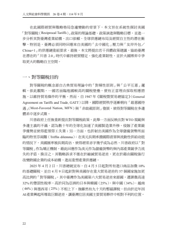 22%u4eba%u6587%u8207%u793e%u6703%u79d1%u5b78%u7c21%u8a0a%u300026%u53774%u671f%uff0e114%u5e749%u6708%u5728%u6b64%u570b%u969b%u7d93%u8cbf%u8207%u6230%u7565%u683c%u5c40%u6025%u907d%u8b8a%u52d5%u7684%u80cc%u666f%u4e0b%uff0c%u672c%u6587%u65e8%u5728%u7cfb%u7d71%u6027%u63a2%u8a0e%u7f8e%u570b%u300c%u5c0d%u7b49%u95dc%u7a05%uff08Reciprocal Tariffs%uff09%u300d%u653f%u7b56%u7684%u7406%u8ad6%u57fa%u790e%u3001%u653f%u7b56%u6f14%u9032%u8207%u6230%u7565%u76ee%u6a19%uff0c%u4e26%u9032%u4e00%u6b65%u5206%u6790%u5176%u5c0d%u81fa%u7063%u7522%u696d%u7d50%u69cb%u3001%u51fa%u53e3%u4f9d%u8cf4%u3001%u5168%u7403%u4f9b%u61c9%u93c8%u5e03%u5c40%u53ca%u7d93%u8cbf%u81ea%u4e3b%u6027%u7684%u6f5b%u5728%u885d%u64ca%u3002%u7279%u5225%u662f%uff0c%u81fa%u7063%u5fc5%u9808%u540c%u6642%u56de%u61c9%u4f86%u81ea%u7f8e%u570b%u7684%u300c%u53bb%u4e2d%u570b%u5316%u300d%u58d3%u529b%u8207%u300c%u53cb%u5cb8%u5916%u5305%uff0fChina+1%u300d%u7684%u4f9b%u61c9%u93c8%u91cd%u7d44%u8981%u6c42%u3002%u6700%u5f8c%uff0c%u672c%u6587%u5c07%u63d0%u51fa%u82e5%u5e72%u5177%u9ad4%u653f%u7b56%u5efa%u8b70%uff0c%u5354%u52a9%u81fa%u7063%u5728%u6f5b%u5728%u7684%u300c%u5ddd%u666e 2.0%u300d%u6642%u4ee3%u4e2d%u7dad%u6301%u7d93%u8cbf%u7a69%u5b9a%u3001%u5f37%u5316%u7522%u696d%u97cc%u6027%uff0c%u4e26%u65bc%u5927%u570b%u535a%u5f08%u4e2d%u722d%u53d6%u66f4%u5927%u7684%u6230%u7565%u81ea%u4e3b%u7a7a%u9593%u3002%u4e00%u3001%u5c0d%u7b49%u95dc%u7a05%u76ee%u7684%u5c0d%u7b49%u95dc%u7a05%u7684%u6982%u5ff5%u6e90%u81ea%u53e4%u5178%u8cbf%u6613%u7406%u8ad6%u4e2d%u7684%u300c%u5c0d%u7a31%u6027%u539f%u5247%u300d%u8207%u300c%u516c%u5e73%u4e92%u60e0%u300d%u908f%u8f2f%u3002%u4f9d%u6b64%u89c0%u9ede%uff0c%u4e00%u570b%u82e5%u9762%u81e8%u4ed6%u570b%u8f03%u9ad8%u7684%u95dc%u7a05%u58c1%u58d8%uff0c%u4fbf%u6709%u6b63%u7576%u7406%u7531%u63a1%u53d6%u76f8%u61c9%u63aa%u65bd%uff0c%u4ee5%u7dad%u6301%u8cbf%u6613%u689d%u4ef6%u7684%u5e73%u8861%u3002%u7136%u800c%uff0c%u81ea1947%u5e74%u300a%u95dc%u7a05%u66a8%u8cbf%u6613%u7e3d%u5354%u5b9a%u300b%uff08General Agreement on Tariffs and Trade, GATT%uff09%u4ee5%u964d%uff0c%u570b%u969b%u7d93%u8cbf%u79e9%u5e8f%u9010%u6f38%u671d%u5411%u300c%u6700%u60e0%u570b%u5f85%u9047%u300d%uff08Most-Favored Nation, MFN%uff09%u8207%u300c%u975e%u6b67%u8996%u539f%u5247%u300d%u767c%u5c55%uff0c%u4f7f%u5f97%u5c0d%u7b49%u95dc%u7a05%u5728%u591a%u908a%u9ad4%u7cfb%u4e2d%u9010%u6b65%u5f0f%u5fae%u3002%u5ddd%u666e%u653f%u5e9c%u4e0a%u4efb%u5f8c%u91cd%u65b0%u63d0%u51fa%u5c0d%u7b49%u95dc%u7a05%u653f%u7b56%u3002%u6b64%u8209%u4e00%u65b9%u9762%u53cd%u6620%u51fa%u5c0dWTO%u898f%u7bc4%u8207%u591a%u908a%u4e3b%u7fa9%u7684%u4e0d%u6eff%uff0c%u8a8d%u70ba%u6578%u5341%u5e74%u7684%u5168%u7403%u5316%u52a0%u901f%u4e86%u7f8e%u570b%u88fd%u9020%u696d%u5916%u79fb%uff0c%u4fb5%u8755%u4e86%u7522%u696d%u7af6%u722d%u512a%u52e2%u4e26%u4f7f%u5f97%u85cd%u9818%u52de%u5de5%u5931%u696d%uff1b%u53e6%u4e00%u65b9%u9762%uff0c%u4e5f%u6298%u5c04%u51fa%u7f8e%u570b%u4f5c%u70ba%u5168%u7403%u5132%u5099%u8ca8%u5e63%u6240%u9762%u81e8%u7684%u7279%u91cc%u82ac%u5169%u96e3%uff08Triffin dilemma%uff09%uff1a%u5728%u7f8e%u5143%u9577%u671f%u627f%u64d4%u570b%u969b%u6e05%u7b97%u8207%u6d41%u52d5%u6027%u4f9b%u7d66%u529f%u80fd%u7684%u60c5%u6cc1%u4e0b%uff0c%u7f8e%u570b%u532f%u7387%u88ab%u9577%u671f%u9ad8%u4f30%uff0c%u4f7f%u5f97%u7d93%u5e38%u8d64%u5b57%u5e7e%u4e4e%u6210%u70ba%u5fc5%u7136%u3002%u5ddd%u666e%u653f%u5e9c%u4ee5%u300c%u5c0d%u7b49%u95dc%u7a05%u300d%u4f5c%u70ba%u77ef%u6b63%u6a5f%u5236%uff0c%u85c9%u6b64%u56de%u61c9%u4f5c%u70ba%u7f8e%u5143%u4f5c%u70ba%u5132%u5099%u8ca8%u5e63%u7684%u8207%u5167%u90e8%u7522%u696d%u7af6%u722d%u529b%u6d41%u5931%u7684%u77db%u76fe%u3002%u63db%u8a00%u4e4b%uff0c%u5176%u6230%u7565%u8a34%u6c42%u4e0d%u50c5%u5728%u65bc%u7e2e%u6e1b%u8cbf%u6613%u9006%u5dee%uff0c%u66f4%u5728%u65bc%u85c9%u7531%u95dc%u7a05%u5f37%u884c%u6539%u8b8a%u8de8%u570b%u4f01%u696d%u7684%u6210%u672c%u7d50%u69cb%uff0c%u9032%u800c%u91cd%u5851%u7522%u696d%u4f9b%u61c9%u93c8%u30022025%u5e744%u67082%u65e5%uff0c%u5ddd%u666e%u7e3d%u7d71%u5ba3%u5e03%uff0c%u81ea4%u67085%u65e5%u8d77%u5c0d%u6240%u6709%u9032%u53e3%u5546%u54c1%u52a0%u5fb510%%u7684%u57fa%u790e%u95dc%u7a05%uff0c%u4e26%u81ea4%u67089%u65e5%u8d77%u91dd%u5c0d%u8207%u7f8e%u570b%u5b58%u5728%u91cd%u5927%u8cbf%u6613%u9006%u5dee%u768457%u500b%u570b%u5bb6%u65bd%u52a0%u66f4%u9ad8%u6bd4%u4f8b%u7684%u300c%u5c0d%u7b49%u95dc%u7a05%u300d%u3002%u5176%u4e2d%u81fa%u7063%u4f5c%u70ba%u7f8e%u570b%u7b2c%u516d%u5927%u8cbf%u6613%u9006%u5dee%u4f86%u6e90%u570b%uff0c%u906d%u8ab2%u5fb5%u9ad8%u905432%%u7684%u61f2%u7f70%u6027%u7a05%u7387%uff0c%u9ad8%u65bc%u540c%u70ba%u4e9e%u6d32%u7684%u65e5%u672c%u8207%u97d3%u570b%uff0825%%uff09%uff0c%u8207%u4e2d%u570b%uff0834%%uff09%u3001%u8d8a%u5357%uff0846%%uff09%u8207%u58a8%u897f%u54e5%uff0825%%uff09%u4e0d%u76f8%u4e0a%u4e0b%uff0c%u5f8c%u96d6%u7136%u6709%u4e5d%u5341%u5929%u7684%u66ab%u7de9%u8ab2%u7a05%uff0c%u4f46%u7531%u65bc%u8fd1%u5e74%u56e0AI%u7522%u696d%u8208%u8d77%u6240%u5c0e%u81f4%u5de8%u984d%u9006%u5dee%uff0c%u8b93%u81fa%u7063%u4f4d%u5c45%u7f8e%u570b%u4e3b%u8981%u8cbf%u6613%u5925%u4f34%u4e2d%u76f8%u5c0d%u4e0d%u5229%u7684%u4f4d%u7f6e%u3002