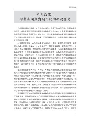%u767c%u884c%u4eba%u7684%u8a711%u7814%u7a76%u502b%u7406%uff1a%u7dad%u7e6b%u5728%u958b%u5275%u8207%u8aa0%u4fe1%u9593%u7684%u5fc5%u8981%u5f35%u529b%u65e5%u524d%u6cb8%u6cb8%u63da%u63da%u7684%u81fa%u5e2b%u5927%u5973%u8db3%u968a%u62bd%u8840%u4e8b%u4ef6%uff0c%u9020%u6210%u4e86%u8a31%u591a%u5b78%u754c%u540c%u4ec1%u7684%u8a0e%u8ad6%u8207%u60f6%u60f6%u4e0d%u5b89%uff0c%u6216%u8a31%u6709%u670b%u53cb%u4e0d%u6e05%u695a%u9019%u500b%u7814%u7a76%u6848%u4f8b%u5176%u5be6%u5c31%u767c%u751f%u5728%u4eba%u6587%u8655%u696d%u7ba1%u7684%u7bc4%u570d%uff0c%u56e0%u70ba%u9ad4%u80b2%u5b78%u6b63%u662f%u5728%u6559%u80b2%u5b78%u9580%u7684%u6b21%u9818%u57df%u4e4b%u4e00%u3002%u9019%u4e00%u500b%u6848%u4ef6%u80cc%u5f8c%u7684%u727d%u6d89%u56e0%u7d20%u8907%u96dc%uff0c%u9664%u4e86%u6d89%u53ca%u7814%u7a76%u8005%u53ca%u7814%u7a76%u5c0d%u8c61%u4e4b%u9593%u7684%u6b0a%u529b%u4e0d%u5c0d%u7b49%u95dc%u4fc2%u4e4b%u5916%uff0c%u4e5f%u8ddf%u6574%u9ad4%u7814%u7a76%u916c%u8cde%u7684%u7cfb%u7d71%u6027%u56e0%u7d20%u606f%u606f%u76f8%u95dc%u3002%u5982%u679c%u7c21%u8981%u8aaa%u660e%u9019%u4e00%u6b21%u7684%u722d%u8b70%u4e8b%u4ef6%u7a76%u7adf%u767c%u751f%u4ec0%u9ebc%u4e8b%uff1f%u6211%u5011%u5927%u6982%u53ef%u4ee5%u7528%u4e00%u500b%u7c21%u55ae%u7684%u6bd4%u55bb%u4f86%u8aaa%u660e%u3002%u60f3%u50cf%u6709%u4e00%u4f4dA%u6559%u5e2b%u51fa%u4e86%u4e00%u5f35%u8003%u984c%u4f86%u6e2c%u9a57%u4e00%u500b%u73ed%u7d1a%u7684%u5b78%u751f%uff0c%u4f46%u56e0%u70baA%u8001%u5e2b%u5c08%u8077%u51fa%u984c%uff0c%u7121%u6687%u518d%u64a5%u51fa%u6642%u9593%u7ba1%u7406%u8003%u8a66%u4e8b%u52d9%uff0c%u6240%u4ee5%u5c31%u59d4%u8acb%u8a72%u73ed%u7d1a%u7684%u5c0e%u5e2b%u5354%u52a9%u76e3%u8003%uff0c%u5f8c%u4f86%u88ab%u8209%u767c%u9019%u500b%u73ed%u7d1a%u88e1%u9762%u6709%u540c%u5b78%u821e%u5f0a%uff0c%u56e0%u70ba%u4e8b%u614b%u56b4%u91cd%u6240%u4ee5%u5f15%u767c%u4e86%u8f3f%u8ad6%u7684%u64bb%u4f10%u3002%u9019%u500b%u904e%u7a0b%u4e2d%uff0cA%u6559%u5e2b%u5c31%u5982%u540c%u662f%u570b%u79d1%u6703%uff0c%u5354%u52a9%u76e3%u8003%u7684%u5c0e%u5e2b%u5c31%u50cf%u662f%u8a72%u5b78%u6821%u4ee5%u53ca%u6240%u5c6c%u7684%u502b%u5be9%u59d4%u54e1%u6703%uff0c%u800c%u821e%u5f0a%u7684%u540c%u5b78%u7576%u7136%u5c31%u662f%u9055%u53cd%u4eba%u9ad4%u7814%u7a76%u6cd5%u898f%u7bc4%u7684%u8001%u5e2b%u3002%u96a8%u8457%u8abf%u67e5%u904e%u7a0b%u7684%u63a8%u9032%uff0c%u4e5f%u610f%u5916%u767c%u73fe%u9019%u500b%u73ed%u7d1a%u540c%u5b78%u5beb%u7684%u8003%u5377%u539f%u4f86%u4e0d%u662f%u53ea%u6709A%u6559%u5e2b%u7684%uff0c%u751a%u81f3%u9084%u6709B%u6559%u5e2b%u3001C%u6559%u5e2b%u6240%u51fa%u7684%u8003%u984c%uff0c%u6709%u7684%u8003%u8a66%u751a%u81f3%u6c92%u6709%u59d4%u8acb%u76e3%u8003%u6559%u5e2b%u5354%u52a9%u3002%u7576%u793e%u6703%u8f3f%u8ad6%u8981%u6c42A%u6559%u5e2b%u3001B%u6559%u5e2b%u3001C%u6559%u5e2b%u4e5f%u90fd%u61c9%u8a72%u70ba%u9019%u6574%u8d77%u4e8b%u4ef6%u8ca0%u8cac%u7684%u6642%u5019%uff0c%u8a31%u591a%u554f%u984c%u5c31%u6703%u9010%u6f38%u6d89%u53ca%u6574%u500b%u9ad4%u5236%u9762%u7684%u6a5f%u5236%u3002%u7531%u65bc%u665a%u8fd1%u5b78%u8853%u916c%u8cde%u7cfb%u7d71%u504f%u91cd%u5b78%u8853%u6027%u671f%u520a%u8ad6%u6587%u7684%u767c%u8868%uff0c%u52a0%u4e0a%u9375%u7d50%u4e86%u5347%u7b49%u4ee5%u53ca%u5404%u7a2e%u5b78%u8853%u88dc%u52a9%u3001%u734e%u52f5%u7684%u63aa%u65bd%uff0c%u5982%u540c%u9ed8%u6703%u5730%u9f13%u52f5%u6559%u5e2b%u5f80%u9019%u6a23%u7684%u5b78%u8853%u50f9%u503c%u50be%u659c%u3002%u96d6%u7136%u9f13%u52f5%u671f%u520a%u578b%u614b%u7684%u5b78%u8853%u767c%u8868%u662f%u4e00%u7a2e%u5f88%u6709%u6548%u7387%u7684%u77e5%u8b58%u7d2f%u7a4d%u65b9%u5f0f%uff0c%u5c0d%u65bc%u67d0%u4e9b%u5c6c%u6027%u7684%u77e5%u8b58%u9818%u57df%u800c%u8a00%u5177%u6709%u5f88%u597d%u7684%u6b63%u9762%u50f9%u503c%u3002%u4f46%u7f3a%u9ede%u662f%uff0c%u5982%u679c%u300c%u7368%u5c0a%u300d%u671f%u520a%uff0c%u6050%u6015%u4e5f%u6703%u4e0d%u5229%u65bc%u90e8%u5206%u77e5%u8b58%u5c6c%u6027%u8f03%u7279%u6b8a%u7684%u9818%u57df%uff0c%u4f8b%u5982%u5f37%u8abf%u64cd%u4f5c%u9762%u3001%u6280%u85dd%u9762%u3001%u8108%u7d61%u9762%u6216%u60c5%u610f%u9762%u7684%u77e5%u8b58%uff0c%u56e0%u70ba%u9019%u4e9b%u9762%u5411%u7684%u77e5%u8b58%u672a%u5fc5%u53ef%u4ee5%u7528%u5982%u6b64%u8f15%u8584%u77ed%u5c0f%u7684%u7bc7%u5e45%u5c31%u53ef%u4ee5%u9ad4%u73fe%u3002%u5728%u9019%u7a2e%u72c0%u6cc1%u4e0b%uff0c%u5982%u679c%u6211%u5011%u8981%u6c42%u67d0%u4e9b%u7279%u6b8a%u5c08%u9577%u7684%u6559%u5e2b%u540c%u6a23%u9700%u8981%u7528%u9019%u7a2e%u578b%u614b%u9032%u884c%u5b78%u8853%u7d2f%u7a4d%uff0c%u90a3%u7121%u7591%u662f%u903c%u8feb%u4ed6%u5011%u9700%u8981%u900f%u904e%u53e6%u985e%u7684%u5206%u5de5%u4f86%u5f62%u6210%u7279%u6b8a%u7684%u77e5%u8b58%u751f%u7522%u93c8%u3002%u4e00%u65e6%u9019%u500b%u751f%u7522%u93c8%u7684%u5404%u500b%u74b0%u7bc0%u5f7c%u6b64%u65b7%u88c2%uff0c%u8a31%u591a%u7814%u7a76%u502b%u7406%u65b9%u9762%u7684%u5167%u6db5%u5c31%u4e0d%u5bb9%u6613%u8cab%u5fb9%uff0c%u9019%u4e5f%u662f%u9020%u6210%u6b64%u6b21%u812b%u5e8f%u61be%u4e8b%u7684%u4e3b%u56e0%u3002%u5728%u4e8b%u4ef6%u767c%u751f%u4e4b%u6642%uff0c%u66fe%u807d%u805e%u67d0%u4f4d%u7814%u7a76%u502b%u7406%u5c08%u9577%u7684%u670b%u53cb%u8a9e%u91cd%u5fc3%u9577%u5730%u611f%u5606%u9053%uff0c%u539f%u672c%u7814%u7a76%u502b%u7406%u7684%u8a2d%u8a08%u7406%u60f3%u4e0d%u50c5%u662f%u70ba%u4e86%u4fdd%u8b77%u7814%u7a76%u53c3%u8207%u8005%uff0c%u5176%u5be6%u4e5f%u662f%u70ba%u4e86%u4fdd%u8b77%u7814%u7a76%u8005%uff0c%u8b93%u7814%u7a76%u8005%u53ef%u4ee5%u5b89%u5fc3%u5730%u9032%u884c%u7814%u7a76%uff0c%u8b93%u7814%u7a76
