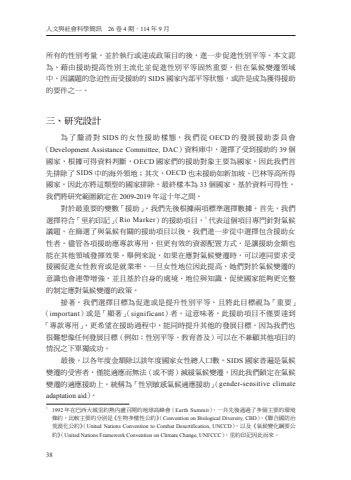 38%u4eba%u6587%u8207%u793e%u6703%u79d1%u5b78%u7c21%u8a0a%u300026%u53774%u671f%uff0e114%u5e749%u6708%u6240%u6709%u7684%u6027%u5225%u8003%u91cf%uff0c%u4e26%u65bc%u57f7%u884c%u6216%u9054%u6210%u653f%u7b56%u76ee%u7684%u5f8c%uff0c%u9032%u4e00%u6b65%u4fc3%u9032%u6027%u5225%u5e73%u7b49%u3002%u672c%u6587%u8a8d%u70ba%uff0c%u85c9%u7531%u63f4%u52a9%u63d0%u9ad8%u6027%u5225%u4e3b%u6d41%u5316%u4e26%u4fc3%u9032%u6027%u5225%u5e73%u7b49%u56fa%u7136%u91cd%u8981%uff0c%u4f46%u5728%u6c23%u5019%u8b8a%u9077%u9818%u57df%u4e2d%uff0c%u56e0%u8b70%u984c%u7684%u6025%u8feb%u6027%u800c%u53d7%u63f4%u52a9%u7684SIDS%u570b%u5bb6%u5167%u90e8%u5e73%u7b49%u72c0%u614b%uff0c%u6216%u8a31%u662f%u6210%u70ba%u7372%u5f97%u63f4%u52a9%u7684%u8981%u4ef6%u4e4b%u4e00%u3002%u4e09%u3001%u7814%u7a76%u8a2d%u8a08%u70ba%u4e86%u91d0%u6e05%u5c0dSIDS%u7684%u5973%u6027%u63f4%u52a9%u6a23%u614b%uff0c%u6211%u5011%u5f9eOECD%u7684%u767c%u5c55%u63f4%u52a9%u59d4%u54e1%u6703%uff08Development Assistance Committee, DAC%uff09%u8cc7%u6599%u5eab%u4e2d%uff0c%u9078%u64c7%u4e86%u53d7%u5230%u63f4%u52a9%u768439%u500b%u570b%u5bb6%uff0c%u6839%u64da%u53ef%u5f97%u8cc7%u6599%u5224%u65b7%uff0cOECD%u570b%u5bb6%u5011%u7684%u63f4%u52a9%u5c0d%u8c61%u4e3b%u8981%u70ba%u570b%u5bb6%uff0c%u56e0%u6b64%u6211%u5011%u9996%u5148%u6392%u9664%u4e86SIDS%u4e2d%u7684%u6d77%u5916%u9818%u5730%uff1b%u5176%u6b21%uff0cOECD%u4e5f%u672a%u63f4%u52a9%u5982%u65b0%u52a0%u5761%u3001%u5df4%u6797%u7b49%u9ad8%u6240%u5f97%u570b%u5bb6%uff0c%u56e0%u6b64%u4ea6%u5c07%u9019%u985e%u578b%u7684%u570b%u5bb6%u6392%u9664%u3002%u6700%u7d42%u6a23%u672c%u70ba33%u500b%u570b%u5bb6%uff0c%u57fa%u65bc%u8cc7%u6599%u53ef%u5f97%u6027%uff0c%u6211%u5011%u5c07%u7814%u7a76%u7bc4%u570d%u9396%u5b9a%u57282009-2019%u5e74%u9019%u5341%u5e74%u4e4b%u9593%u3002%u5c0d%u65bc%u6700%u91cd%u8981%u7684%u8b8a%u6578%u300c%u63f4%u52a9%u300d%uff0c%u6211%u5011%u5148%u5f8c%u6839%u64da%u5169%u9805%u6a19%u6e96%u9078%u64c7%u6578%u64da%u3002%u9996%u5148%uff0c%u6211%u5011%u9078%u64c7%u7b26%u5408%u300c%u91cc%u7d04%u5370%u8a18%u300d%uff08Rio Marker%uff09%u7684%u63f4%u52a9%u9805%u76ee%uff0c1%u4ee3%u8868%u9019%u500b%u9805%u76ee%u5c08%u9580%u91dd%u5c0d%u6c23%u5019%u8b70%u984c%u3002%u5728%u7be9%u9078%u4e86%u8207%u6c23%u5019%u6709%u95dc%u7684%u63f4%u52a9%u9805%u76ee%u4ee5%u5f8c%uff0c%u6211%u5011%u9032%u4e00%u6b65%u5f9e%u4e2d%u9078%u64c7%u5305%u542b%u63f4%u52a9%u5973%u6027%u8005%u3002%u5118%u7ba1%u5404%u9805%u63f4%u52a9%u61c9%u5c08%u6b3e%u5c08%u7528%uff0c%u4f46%u66f4%u6709%u6548%u7684%u8cc7%u6e90%u914d%u7f6e%u65b9%u5f0f%uff0c%u662f%u8b93%u63f4%u52a9%u91d1%u984d%u4e5f%u80fd%u5728%u5176%u4ed6%u9818%u57df%u767c%u63ee%u6548%u679c%u3002%u8209%u4f8b%u4f86%u8aaa%uff0c%u5982%u679c%u5728%u61c9%u5c0d%u6c23%u5019%u8b8a%u9077%u6642%uff0c%u53ef%u4ee5%u9023%u540c%u8981%u6c42%u53d7%u63f4%u570b%u4fc3%u9032%u5973%u6027%u6559%u80b2%u6216%u662f%u5c31%u696d%u7387%uff0c%u4e00%u65e6%u5973%u6027%u5730%u4f4d%u56e0%u6b64%u63d0%u9ad8%uff0c%u5979%u5011%u5c0d%u65bc%u6c23%u5019%u8b8a%u9077%u7684%u610f%u8b58%u4e5f%u6703%u9023%u5e36%u589e%u5f37%uff0c%u4e26%u4e14%u57fa%u65bc%u81ea%u8eab%u7684%u8655%u5883%u3001%u5730%u4f4d%u8207%u77e5%u8b58%uff0c%u4fc3%u4f7f%u570b%u5bb6%u80fd%u5920%u66f4%u5b8c%u6574%u7684%u5236%u5b9a%u61c9%u5c0d%u6c23%u5019%u8b8a%u9077%u7684%u653f%u7b56%u3002%u63a5%u8457%uff0c%u6211%u5011%u9078%u64c7%u76ee%u6a19%u70ba%u4fc3%u9032%u6216%u662f%u63d0%u5347%u6027%u5225%u5e73%u7b49%uff0c%u4e14%u5c07%u6b64%u76ee%u6a19%u8996%u70ba%u300c%u91cd%u8981%u300d%uff08important%uff09%u6216%u662f%u300c%u986f%u8457%u300d%uff08significant%uff09%u8005%u3002%u9019%u610f%u5473%u8457%uff0c%u6b64%u63f4%u52a9%u9805%u76ee%u4e0d%u50c5%u8981%u9054%u5230%u300c%u5c08%u6b3e%u5c08%u7528%u300d%uff0c%u66f4%u5e0c%u671b%u5728%u63f4%u52a9%u904e%u7a0b%u4e2d%uff0c%u80fd%u540c%u6642%u63d0%u5347%u5176%u4ed6%u7684%u767c%u5c55%u76ee%u6a19%uff0c%u56e0%u70ba%u6211%u5011%u4e5f%u5f88%u96e3%u60f3%u50cf%u4efb%u4f55%u767c%u5c55%u76ee%u6a19%uff08%u4f8b%u5982%uff1a%u6027%u5225%u5e73%u7b49%u3001%u6559%u80b2%u666e%u53ca%uff09%u53ef%u4ee5%u5728%u4e0d%u517c%u9867%u5176%u4ed6%u9805%u76ee%u7684%u60c5%u6cc1%u4e4b%u4e0b%u55ae%u7368%u6210%u529f%u3002%u6700%u5f8c%uff0c%u4ee5%u5404%u5e74%u5ea6%u91d1%u984d%u9664%u4ee5%u8a72%u5e74%u5ea6%u570b%u5bb6%u5973%u6027%u7e3d%u4eba%u53e3%u6578%u3002SIDS%u570b%u5bb6%u666e%u904d%u662f%u6c23%u5019%u8b8a%u9077%u7684%u53d7%u5bb3%u8005%uff0c%u50c5%u80fd%u9069%u61c9%u800c%u7121%u6cd5%uff08%u6216%u4e0d%u9700%uff09%u6e1b%u7de9%u6c23%u5019%u8b8a%u9077%uff0c%u56e0%u6b64%u6211%u5011%u9396%u5b9a%u5728%u6c23%u5019%u8b8a%u9077%u7684%u9069%u61c9%u63f4%u52a9%u4e0a%uff0c%u7d71%u7a31%u70ba%u300c%u6027%u5225%u654f%u611f%u6c23%u5019%u9069%u61c9%u63f4%u52a9%u300d%uff08gender-sensitive climate adaptation aid%uff09%u30021 1992%u5e74%u5728%u5df4%u897f%u5927%u57ce%u91cc%u7d04%u71b1%u5167%u76e7%u53ec%u958b%u7684%u5730%u7403%u9ad8%u5cf0%u6703%uff08Earth Summit%uff09%uff0c%u4e00%u5171%u5148%u5f8c%u901a%u904e%u4e86%u591a%u500b%u4e3b%u8981%u7684%u74b0%u5883%u689d%u7d04%uff0c%u6bd4%u8f03%u4e3b%u8981%u7684%u5206%u5225%u662f%u300a%u751f%u7269%u591a%u6a23%u6027%u516c%u7d04%u300b%uff08Convention on Biological Diversity, CBD%uff09%u3001%u300a%u806f%u5408%u570b%u9632%u6cbb%u8352%u6f20%u5316%u516c%u7d04%u300b%uff08United Nations Convention to Combat Desertification, UNCCD%uff09%uff0c%u4ee5%u53ca%u300a%u6c23%u5019%u8b8a%u5316%u7db1%u8981%u516c%u7d04%u300b%uff08United Nations Framework Convention on Climate Change, UNFCCC%uff09%u3002%u91cc%u7d04%u5370%u8a18%u56e0%u6b64%u800c%u4f86%u3002