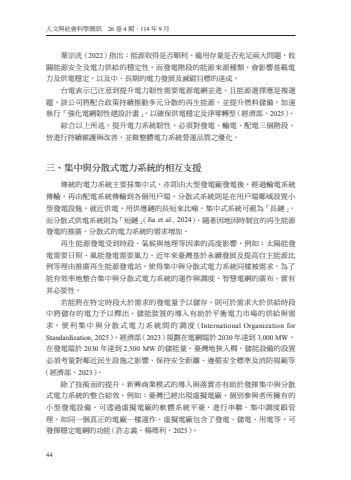 44%u4eba%u6587%u8207%u793e%u6703%u79d1%u5b78%u7c21%u8a0a%u300026%u53774%u671f%uff0e114%u5e749%u6708%u8449%u5b97%u6d38%uff082022%uff09%u6307%u51fa%uff1a%u80fd%u6e90%u53d6%u5f97%u662f%u5426%u9806%u5229%u3001%u5099%u7528%u5b58%u91cf%u662f%u5426%u5145%u8db3%u5169%u5927%u554f%u984c%uff0c%u6538%u95dc%u80fd%u6e90%u5b89%u5168%u53ca%u96fb%u529b%u4f9b%u7d66%u7684%u7a69%u5b9a%u6027%u3002%u800c%u767c%u96fb%u968e%u6bb5%u7684%u80fd%u6e90%u4f86%u6e90%u7a2e%u985e%uff0c%u6703%u5f71%u97ff%u57fa%u8f09%u96fb%u529b%u53ca%u4f9b%u96fb%u7a69%u5b9a%uff0c%u4ee5%u53ca%u4e2d%u3001%u9577%u671f%u7684%u96fb%u529b%u767c%u5c55%u53ca%u6e1b%u78b3%u76ee%u6a19%u7684%u9054%u6210%u3002%u53f0%u96fb%u8868%u793a%u5df2%u6ce8%u610f%u5230%u63d0%u5347%u96fb%u529b%u97cc%u6027%u9700%u8981%u96fb%u6e90%u96fb%u7db2%u4e26%u9032%uff0c%u4e14%u80fd%u6e90%u9078%u64c7%u61c9%u662f%u8907%u9078%u984c%u3002%u8a72%u516c%u53f8%u5c07%u914d%u5408%u653f%u7b56%u6301%u7e8c%u63a8%u52d5%u591a%u5143%u5206%u6563%u7684%u518d%u751f%u80fd%u6e90%uff0c%u4e26%u63d0%u5347%u71c3%u6599%u5132%u5099%uff0c%u52a0%u901f%u57f7%u884c%u300c%u5f37%u5316%u96fb%u7db2%u97cc%u6027%u5efa%u8a2d%u8a08%u756b%u300d%uff0c%u4ee5%u78ba%u4fdd%u4f9b%u96fb%u7a69%u5b9a%u53ca%u6de8%u96f6%u8f49%u578b%uff08%u7d93%u6fdf%u90e8%uff0c2025%uff09%u3002%u7d9c%u5408%u4ee5%u4e0a%u6240%u8ff0%uff0c%u63d0%u5347%u96fb%u529b%u7cfb%u7d71%u97cc%u6027%uff0c%u5fc5%u9808%u5c0d%u767c%u96fb%u3001%u8f38%u96fb%u3001%u914d%u96fb%u4e09%u500b%u968e%u6bb5%uff0c%u7686%u9032%u884c%u6301%u7e8c%u7dad%u8b77%u8207%u6539%u5584%uff0c%u4e26%u505a%u6574%u9ad4%u96fb%u529b%u7cfb%u7d71%u71df%u904b%u54c1%u8cea%u4e4b%u512a%u5316%u3002%u4e09%u3001%u96c6%u4e2d%u8207%u5206%u6563%u5f0f%u96fb%u529b%u7cfb%u7d71%u7684%u76f8%u4e92%u652f%u63f4%u50b3%u7d71%u7684%u96fb%u529b%u7cfb%u7d71%u4e3b%u8981%u63a1%u96c6%u4e2d%u5f0f%uff0c%u4ea6%u5373%u7531%u5927%u578b%u767c%u96fb%u5ee0%u767c%u96fb%u5f8c%uff0c%u7d93%u904e%u8f38%u96fb%u7cfb%u7d71%u50b3%u8f38%uff0c%u518d%u7531%u914d%u96fb%u7cfb%u7d71%u50b3%u8f38%u5230%u5404%u500b%u7528%u6236%u7aef%u3002%u5206%u6563%u5f0f%u7cfb%u7d71%u5247%u662f%u5728%u7528%u6236%u7aef%u9130%u57df%u8a2d%u7f6e%u5c0f%u578b%u767c%u96fb%u8a2d%u65bd%uff0c%u5c31%u8fd1%u4f9b%u96fb%u3002%u7528%u4f9b%u61c9%u93c8%u7684%u9577%u77ed%u4f86%u6bd4%u55bb%uff0c%u96c6%u4e2d%u5f0f%u7cfb%u7d71%u53ef%u8996%u70ba%u300c%u9577%u93c8%u300d%uff0c%u800c%u5206%u6563%u5f0f%u4f9b%u96fb%u7cfb%u7d71%u5247%u70ba%u300c%u77ed%u93c8%u300d%uff08Jia et al., 2024%uff09%u3002%u96a8%u8457%u56e0%u5730%u56e0%u6642%u5236%u5b9c%u7684%u518d%u751f%u80fd%u6e90%u767c%u96fb%u7684%u63a8%u5ee3%uff0c%u5206%u6563%u5f0f%u7684%u96fb%u529b%u7cfb%u7d71%u7684%u9700%u6c42%u589e%u52a0%u3002%u518d%u751f%u80fd%u6e90%u767c%u96fb%u53d7%u5230%u6642%u6bb5%u3001%u6c23%u5019%u8207%u5730%u7406%u7b49%u56e0%u7d20%u7684%u9ad8%u5ea6%u5f71%u97ff%uff0c%u4f8b%u5982%uff1a%u592a%u967d%u80fd%u767c%u96fb%u9700%u8981%u65e5%u7167%u3001%u98a8%u80fd%u767c%u96fb%u9700%u8981%u98a8%u529b%u3002%u8fd1%u5e74%u4f86%u81fa%u7063%u57fa%u65bc%u6c38%u7e8c%u767c%u5c55%u53ca%u63d0%u9ad8%u81ea%u4e3b%u80fd%u6e90%u6bd4%u4f8b%u7b49%u7406%u7531%u63a8%u5ee3%u518d%u751f%u80fd%u6e90%u767c%u96fb%u7ad9%uff0c%u4f7f%u5f97%u96c6%u4e2d%u8207%u5206%u6563%u5f0f%u96fb%u529b%u7cfb%u7d71%u540c%u6a23%u88ab%u9700%u6c42%u3002%u70ba%u4e86%u80fd%u6709%u6548%u7387%u5730%u6574%u5408%u96c6%u4e2d%u8207%u5206%u6563%u5f0f%u96fb%u529b%u7cfb%u7d71%u7684%u904b%u4f5c%u8207%u8abf%u5ea6%uff0c%u667a%u6167%u96fb%u7db2%u7684%u5ee3%u5e03%uff0c%u5be6%u6709%u5176%u5fc5%u8981%u6027%u3002%u82e5%u80fd%u5c07%u5728%u7279%u5b9a%u6642%u6bb5%u5927%u65bc%u9700%u6c42%u7684%u767c%u96fb%u91cf%u4e88%u4ee5%u5132%u5b58%uff0c%u5247%u53ef%u65bc%u9700%u6c42%u5927%u65bc%u4f9b%u7d66%u6642%u6bb5%u4e2d%u5c07%u5132%u5b58%u7684%u96fb%u529b%u4e88%u4ee5%u91cb%u51fa%u3002%u5132%u80fd%u88dd%u7f6e%u7684%u5c0e%u5165%u6709%u52a9%u65bc%u5e73%u8861%u96fb%u529b%u5e02%u5834%u7684%u4f9b%u7d66%u8207%u9700%u6c42%uff0c %u4fbf %u5229 %u96c6 %u4e2d %u8207 %u5206 %u6563 %u5f0f %u96fb %u529b %u7cfb %u7d71 %u9593 %u7684 %u8abf %u5ea6%uff08International Organization for Standardization, 2025%uff09%u3002%u7d93%u6fdf%u90e8%uff082023%uff09%u898f%u5283%u5728%u96fb%u7db2%u7aef%u65bc2030%u5e74%u9054%u52303,000 MW%uff0c%u5728%u767c%u96fb%u7aef%u65bc2030%u5e74%u9054%u52302,500 MW%u7684%u5132%u80fd%u91cf%u3002%u81fa%u7063%u5730%u72f9%u4eba%u7a20%uff0c%u5132%u80fd%u8a2d%u5099%u7684%u8a2d%u7f6e%u5fc5%u9808%u8003%u91cf%u5c0d%u9130%u8fd1%u6c11%u751f%u8a2d%u65bd%u4e4b%u5f71%u97ff%u3001%u4fdd%u6301%u5b89%u5168%u8ddd%u96e2%u3001%u9075%u5faa%u5b89%u5168%u6a19%u6e96%u53ca%u6d88%u9632%u898f%u7bc4%u7b49%uff08%u7d93%u6fdf%u90e8%uff0c2023%uff09%u3002%u9664%u4e86%u6280%u8853%u9762%u7684%u63d0%u5347%uff0c%u65b0%u8208%u5546%u696d%u6a21%u5f0f%u7684%u5c0e%u5165%u8207%u843d%u5be6%u4ea6%u6709%u52a9%u65bc%u767c%u63ee%u96c6%u4e2d%u8207%u5206%u6563%u5f0f%u96fb%u529b%u7cfb%u7d71%u7684%u6574%u5408%u7d9c%u6548%uff0c%u4f8b%u5982%uff1a%u81fa%u7063%u5df2%u7d93%u51fa%u73fe%u865b%u64ec%u96fb%u5ee0%u3002%u500b%u5225%u53c3%u8207%u8005%u6240%u64c1%u6709%u7684%u5c0f%u578b%u767c%u96fb%u8a2d%u5099%uff0c%u53ef%u900f%u904e%u865b%u64ec%u96fb%u5ee0%u7684%u8edf%u9ad4%u7cfb%u7d71%u5e73%u81fa%uff0c%u9032%u884c%u4e32%u806f%u3001%u96c6%u4e2d%u8abf%u5ea6%u8ddf%u7ba1%u7406%uff0c%u5982%u540c%u4e00%u500b%u771f%u6b63%u7684%u96fb%u5ee0%u4e00%u6a23%u904b%u4f5c%u3002%u865b%u64ec%u96fb%u5ee0%u5305%u542b%u4e86%u767c%u96fb%u3001%u5132%u96fb%u3001%u7528%u96fb%u7b49%uff0c%u53ef%u767c%u63ee%u7a69%u5b9a%u96fb%u7db2%u7684%u529f%u80fd%uff08%u8a31%u5fd7%u7fa9%u3001%u694a%u746a%u5229%uff0c2025%uff09%u3002