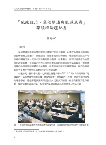 6%u4eba%u6587%u8207%u793e%u6703%u79d1%u5b78%u7c21%u8a0a%u300026%u53774%u671f%uff0e114%u5e749%u6708%u300c%u5730%u7de3%u653f%u6cbb%u3001%u6c23%u5019%u8b8a%u9077%u8207%u80fd%u6e90%u5371%u6a5f%u300d%u8de8%u9818%u57df%u8ad6%u58c7%u7d00%u8981%u90ed%u5ead%u4f51%uff0a%u4e00%u3001%u524d%u8a00%u6c23%u5019%u8b8a%u9077%u8207%u80fd%u6e90%u5371%u6a5f%u5411%u4f86%u662f%u5168%u7403%u95dc%u6ce8%u7684%u91cd%u5927%u8b70%u984c%uff0c%u8fd1%u5e74%u5728%u6975%u7aef%u6c23%u5019%u983b%u73fe%u8207%u80fd%u6e90%u8f49%u578b%u58d3%u529b%u52a0%u5287%u4e0b%uff0c%u66f4%u986f%u8feb%u5207%u3002%u800c%u96a8%u8457%u570b%u969b%u5c40%u52e2%u8b8a%u5316%uff0c%u5730%u7de3%u653f%u6cbb%u4ea6%u6210%u70ba%u4e0d%u53ef%u5ffd%u8996%u7684%u95dc%u9375%u56e0%u7d20%u3002%u5f9e%u7f8e%u4e2d%u8cbf%u6613%u6230%u5230%u4fc4%u70cf%u6230%u722d%u3001%u4e2d%u6771%u885d%u7a81%uff0c%u518d%u5230%u5ddd%u666e%u91cd%u8fd4%u767d%u5bae%u5e36%u4f86%u7684%u653f%u7b56%u5f71%u97ff%uff0c%u5168%u7403%u653f%u6cbb%u89d2%u529b%u6b63%u6df1%u523b%u5f71%u97ff%u5404%u570b%u7684%u80fd%u6e90%u5e03%u5c40%u8207%u6c23%u5019%u653f%u7b56%uff0c%u5c0d%u81fa%u7063%u9019%u6a23%u7684%u5c0f%u578b%u958b%u653e%u7d93%u6fdf%u9ad4%u66f4%u5177%u6311%u6230%u6027%u3002%u9762%u5c0d%u9ad8%u5ea6%u4e0d%u78ba%u5b9a%u7684%u570b%u969b%u74b0%u5883%uff0c%u6211%u5011%u5fc5%u9808%u91cd%u65b0%u601d%u8003%u81fa%u7063%u5728%u5168%u7403%u8207%u5340%u57df%u8cfd%u5c40%u4e2d%u7684%u4f4d%u7f6e%u8207%u7b56%u7565%u3002%u6709%u9451%u65bc%u6b64%uff0c%u570b%u79d1%u6703%u4eba%u793e%u4e2d%u5fc3%u8207%u570b%u7acb%u81fa%u7063%u5927%u5b78%u65bc2025%u5e747%u67084%u65e5%u5171%u540c%u8209%u8fa6%u300c%u5730%u7de3%u653f%u6cbb%u3001%u6c23%u5019%u8b8a%u9077%u8207%u80fd%u6e90%u5371%u6a5f%u300d%u8de8%u9818%u57df%u8ad6%u58c7%uff0c%u9080%u96c6%u653f%u6cbb%u3001%u7d93%u6fdf%u3001%u80fd%u6e90%u8207%u74b0%u5883%u9818%u57df%u7684%u5c08%u5bb6%u5b78%u8005%uff0c%u900f%u904e%u5c08%u984c%u6f14%u8b1b%u8207%u6df1%u5ea6%u5c0d%u8ac7%uff0c%u5f9e%u885d%u7a81%u5230%u5354%u8abf%u3001%u5f9e%u5c0f%u5cf6%u89c0%u9ede%u5230%u5168%u7403%u8996%u91ce%uff0c%u958b%u555f%u524d%u77bb%u6027%u653f%u7b56%u8a0e%u8ad6%uff0c%u70ba%u672a%u4f86%u7684%u6c23%u5019%u8207%u80fd%u6e90%u6cbb%u7406%u642d%u5efa%u591a%u5143%u5c0d%u8a71%u5e73%u81fa%u3002%u5716%u4e00%uff1a%u672c%u6b21%u8de8%u9818%u57df%u8ad6%u58c7%u900f%u904e%u5c08%u984c%u6f14%u8b1b%u8207%u6df1%u5ea6%u5c0d%u8ac7%uff0c%u70ba%u6c23%u5019%u8207%u80fd%u6e90%u6cbb%u7406%u642d%u5efa%u591a%u5143%u5c0d%u8a71%u5e73%u81fa%uff0a%u570b%u7acb%u81fa%u7063%u5927%u5b78%u7d93%u6fdf%u5b78%u7cfb%u535a%u58eb%u751f%u3002%u672c%u8ad6%u58c7%u7d00%u8981%u7d93%u5404%u5834%u6b21%u4e3b%u8b1b%u4eba%u5be9%u8a02%u3002