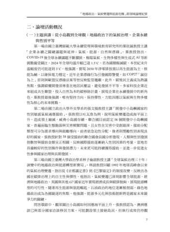%u300c%u5730%u7de3%u653f%u6cbb%u3001%u6c23%u5019%u8b8a%u9077%u8207%u80fd%u6e90%u5371%u6a5f%u300d%u8de8%u9818%u57df%u8ad6%u58c7%u7d00%u89817%u4e8c%u3001%u8ad6%u58c7%u6d3b%u52d5%u6982%u6cc1%uff08%u4e00%uff09%u4e3b%u984c%u6f14%u8b1b%uff1a%u5f9e%u5c0f%u5cf6%u89c0%u5230%u5168%u7403%u89c0%uff1a%u5730%u7de3%u653f%u6cbb%u4e0b%u7684%u6c23%u5019%u6cbb%u7406%u3001%u4f01%u696d%u6c38%u7e8c%u8207%u6027%u5225%u5e73%u7b49%u7b2c%u4e00%u5834%u7531%u570b%u7acb%u81fa%u7063%u5e2b%u7bc4%u5927%u5b78%u6c38%u7e8c%u7ba1%u7406%u8207%u74b0%u5883%u6559%u80b2%u7814%u7a76%u6240%u7684%u8449%u6b23%u8aa0%u6559%u6388%u4e3b%u8b1b%u300c%u4f01%u696d%u6c38%u7e8c%u4e4b%u95dc%u9375%u8b70%u984c%u8207%u5ef6%u4f38%uff1a%u6c23%u5019%u3001%u80fd%u6e90%u3001%u81ea%u7136%u8207%u6f02%u7da0%u300d%u3002%u8449%u6559%u6388%u6307%u51fa%uff0cCOVID-19%u5f8c%u5168%u7403%u6c38%u7e8c%u8b70%u984c%u4e0d%u65b7%u64f4%u5c55%uff0c%u6975%u7aef%u6c23%u5019%u3001%u751f%u7269%u591a%u6a23%u6027%u8207%u751f%u6210%u5f0fAI%u7b49%u65b0%u6311%u6230%u5099%u53d7%u95dc%u6ce8%u30022024%u5e74%u5168%u7403%u5747%u6eab%u5347%u5e45%u5df2%u90541.5%u02daC%uff0c%u82e5%u5404%u570b%u7a4d%u6975%u6e1b%u78b3%uff0c%u672c%u4e16%u7d00%u672b%u5347%u6eab%u5e45%u5ea6%u4ecd%u53ef%u80fd%u9054%u52303%u02daC%u3002%u4ed6%u5f37%u8abf%uff0c%u5be6%u73fe2050%u5e74%u6de8%u96f6%u6392%u653e%u9700%u4ee5%u518d%u751f%u80fd%u6e90%u70ba%u4e3b%u3001%u6838%u80fd%u70ba%u8f14%uff0c%u4ee5%u78ba%u4fdd%u96fb%u529b%u7a69%u5b9a%u3002%u8fd1%u5e74%u4f01%u696d%u6f02%u7da0%u884c%u70ba%u5f15%u767c%u570b%u969b%u8b66%u89ba%uff0c%u5982COP27 %u300c%u8aa0%u4fe1%u70ba%u4e0a%u300d%u539f%u5247%u8207%u6b50%u76df%u53cd%u6f02%u7da0%u6cd5%u6848%u7b49%u7686%u53cd%u6620%u76e3%u7ba1%u8da8%u56b4%u3002%u6b64%u5916%uff0c%u78b3%u6b96%u6c11%u4e3b%u7fa9%u6210%u70ba%u71b1%u8b70%u7126%u9ede%uff0c%u5f37%u8abf%u78b3%u6b0a%u958b%u767c%u9808%u5c0a%u91cd%u5728%u5730%u5c45%u6c11%u6b0a%u76ca%uff0c%u907f%u514d%u767c%u5c55%u4e0d%u5e73%u7b49%u3002%u591a%u5bb6%u79d1%u6280%u4f01%u696d%u8fd1%u4f86%u7d44%u6210%u5171%u751f%u806f%u76df%uff0c%u6295%u5165%u81ea%u7136%u70ba%u672c%u7684%u78b3%u79fb%u9664%u8a08%u756b%uff0c%u5c55%u73fe%u4f01%u696d%u5728%u6c38%u7e8c%u767c%u5c55%u4e2d%u7684%u65b0%u89d2%u8272%u3002%u8449%u6559%u6388%u6700%u5f8c%u5f37%u8abf%uff0c%u552f%u6709%u5805%u6301%u65b9%u5411%u3001%u4fdd%u6301%u5f48%u6027%uff0c%u65b9%u80fd%u56e0%u61c9%u4ee5%u6c23%u5019%u8207%u751f%u7269%u591a%u6a23%u6027%u70ba%u6838%u5fc3%u7684%u672a%u4f86%u6311%u6230%u3002%u7b2c%u4e8c%u5834%u7531%u570b%u7acb%u653f%u6cbb%u5927%u5b78%u5916%u4ea4%u5b78%u7cfb%u7684%u5f35%u6587%u63da%u6559%u6388%u4e3b%u8b1b%u300c%u958b%u767c%u4e2d%u5c0f%u5cf6%u5dbc%u570b%u5bb6%u7684%u6027%u5225%u654f%u611f%u6c23%u5019%u9069%u61c9%u63f4%u52a9%u300d%u3002%u5f35%u6559%u6388%u4ee5%u5410%u74e6%u9b6f%u70ba%u4f8b%uff0c%u8aaa%u660e%u6c23%u5019%u8b8a%u9077%u9020%u6210%u6d77%u5e73%u9762%u4e0a%u5347%uff0c%u9020%u6210%u9818%u571f%u7e2e%u6e1b%uff0c%u5a01%u8105%u5c0f%u5cf6%u570b%u5b58%u7e8c%u3002%u806f%u5408%u570b%u76ee%u524d%u8a8d%u5b9a58%u500b%u958b%u767c%u4e2d%u5c0f%u5cf6%u5dbc%u570b%u5bb6%uff0c%u666e%u904d%u9762%u81e8%u751f%u614b%u8106%u5f31%u8207%u707d%u5bb3%u983b%u7e41%u554f%u984c%uff0c%u4e14%u5973%u6027%u5728%u707d%u5bb3%u4e2d%u53d7%u5275%u6700%u6df1%u3002%u63f4%u52a9%u5206%u914d%u985e%u578b%u53ef%u5206%u70ba%u9700%u6c42%u5c0e%u5411%u8207%u9f13%u52f5%u5c0e%u5411%uff0c%u524d%u8005%u4f9d%u6025%u8feb%u6027%u5206%u914d%uff0c%u5f8c%u8005%u5247%u734e%u52f5%u6027%u5225%u8868%u73fe%u826f%u597d%u7684%u570b%u5bb6%u3002%u5f35%u6559%u6388%u91dd%u5c0d38%u500b%u53d7%u63f4%u52a9%u7684%u806f%u5408%u570b%u6703%u54e1%u570b%u5206%u6790%u767c%u73fe%uff0c%u4eba%u985e%u8207%u6027%u5225%u767c%u5c55%u6307%u6578%u7686%u8207%u63f4%u52a9%u91d1%u984d%u5448%u6b63%u76f8%u95dc%uff0c%u53cd%u6620%u570b%u969b%u63f4%u52a9%u9010%u6f38%u7d0d%u5165%u6027%u5225%u56e0%u7d20%u7684%u8003%u91cf%u3002%u7576%u5730%u82e5%u5177%u5099%u8f03%u597d%u7684%u6027%u5225%u689d%u4ef6%u8207%u767c%u5c55%u6f5b%u529b%uff0c%u672a%u4f86%u66f4%u53ef%u80fd%u6301%u7e8c%u7372%u5f97%u63f4%u52a9%uff0c%u4e26%u9032%u4e00%u6b65%u4fc3%u9032%u5973%u6027%u53c3%u8207%u570b%u5bb6%u6cbb%u7406%u8207%u9577%u671f%u767c%u5c55%u3002%u7b2c%u4e09%u5834%u7531%u570b%u7acb%u81fa%u7063%u5927%u5b78%u653f%u6cbb%u5b78%u7cfb%u6797%u5b50%u502b%u526f%u6559%u6388%u4e3b%u8b1b%u300c%u5168%u7403%u6c23%u5019%u6cbb%u7406%u4e09%u5341%u5e74%uff1a%u6f14%u8b8a%u4e2d%u7684%u5730%u7de3%u653f%u6cbb%u8207%u80fd%u6e90%u8f49%u578b%u65b0%u8cfd%u5c40%u300d%u3002%u6797%u526f%u6559%u6388%u56de%u98671992%u5e74%u5730%u7403%u9ad8%u5cf0%u6703%u4ee5%u4f86%u7684%u6c23%u5019%u6cbb%u7406%u8b8a%u9077%uff0c%u6307%u51fa%u5f9e%u300a%u4eac%u90fd%u8b70%u5b9a%u66f8%u300b%u5230%u300a%u5df4%u9ece%u5354%u5b9a%u300b%u7684%u5236%u5ea6%u6539%u8b8a%uff0c%u53cd%u6620%u51fa%u5404%u570b%u5728%u78b3%u6392%u6cbb%u7406%u4e0a%u7684%u81ea%u4e3b%u6027%u8207%u5f48%u6027%u3002%u4ed6%u6307%u51fa%uff0c%u6c23%u5019%u8b8a%u9077%u5df2%u6df1%u523b%u5f71%u97ff%u5168%u7403%u80fd%u6e90%u3001%u7d93%u6fdf%u8207%u5730%u7de3%u653f%u6cbb%uff0c%u82f1%u570b%u8207%u5176%u4ed6G7%u570b%u5bb6%u8fd1%u5e74%u5be6%u73fe%u7d93%u6fdf%u6210%u9577%u8207%u78b3%u6392%u812b%u9264%uff0c%u5c55%u73fe%u80fd%u6e90%u8f49%u578b%u7684%u53ef%u884c%u6027%u3002%u96a8%u8457%u518d%u751f%u80fd%u6e90%u8207%u6c2b%u80fd%u5d1b%u8d77%uff0c%u77f3%u6cb9%u653f%u6cbb%u7684%u5730%u4f4d%u9010%u6f38%u88ab%u524a%u5f31%uff0c%u7da0%u8272%u5730%u7de3%u653f%u6cbb%u6210%u70ba%u5404%u570b%u7af6%u9010%u7684%u7126%u9ede%u3002%u4ed6%u5f37%u8abf%uff0c%u80fd%u6e90%u591a%u5143%u5316%u8207%u6280%u8853%u5275%u65b0%u5c07%u662f%u570b%u5bb6%u672a%u4f86%u7af6%u722d%u529b%u7684%u95dc%u9375%u3002%u554f%u7b54%u74b0%u7bc0%u4e2d%uff0c%u89c0%u773e%u95dc%u6ce8%u5c0f%u5cf6%u570b%u5982%u4f55%u56e0%u61c9%u6d77%u5e73%u9762%u4e0a%u5347%u3002%u5f35%u6559%u6388%u8a8d%u70ba%uff0c%u6fb3%u6d32%u61c9%u8a72%u5df2%u8207%u90e8%u5206%u570b%u5bb6%u6d3d%u8ac7%u79fb%u5c45%u65b9%u6848%uff0c%u53ef%u80fd%u5283%u8a2d%u9818%u571f%u63a5%u7d0d%u5cf6%u6c11%uff0c%u4f46%u57f7%u884c%u6210%u6548%u4ecd%u5f85%u89c0